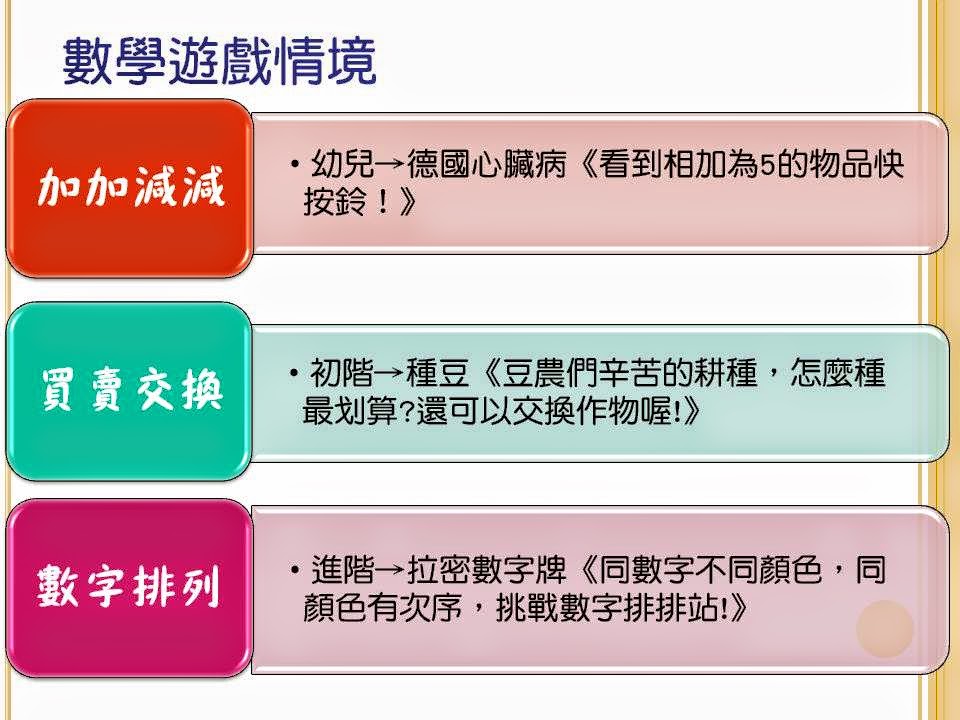 簡單的數字與顏色,就可以有這麼多變化!這一款遊戲可是在國中團裡大獲好評,每一個禮拜都要挑戰的遊戲呢!