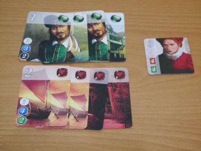 再來看看貴族的圖案,雖然有10張,但是每個人只能蒐集一張,而每一張的分數皆為3分,就看看自己手邊蒐集到的寶石資源卡如何有力的幫助自己得分吧!