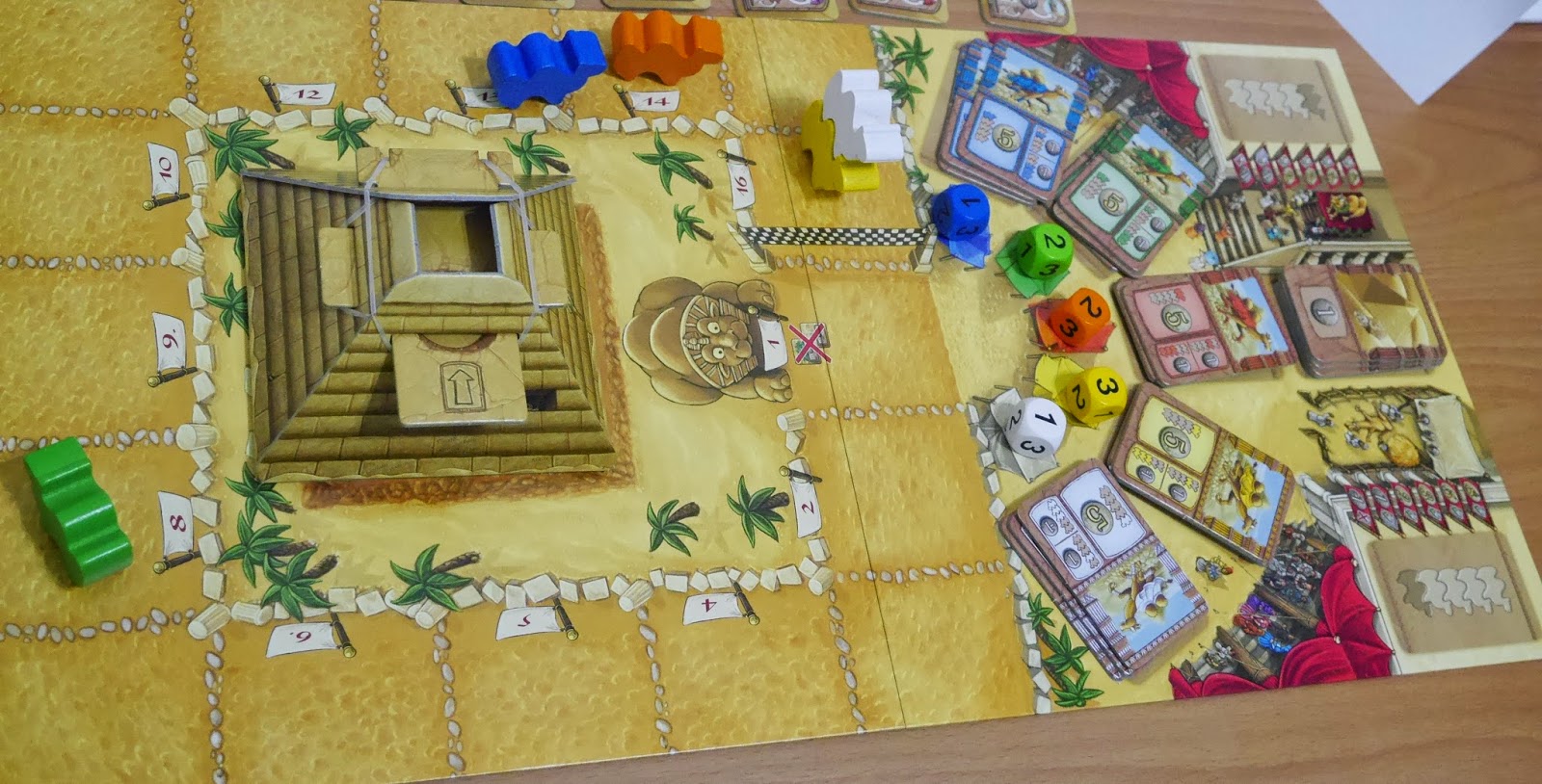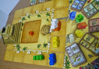 另外還有一個特殊的金字塔骰塔(驚!!) ,當玩家拿取金字塔圖版時,就是駱駝開獎…不!是駱駝開跑的時刻,因為駱駝走得步伐較慢,所以骰子的數字為1、2、3,也因此過程中也更加刺激!!