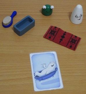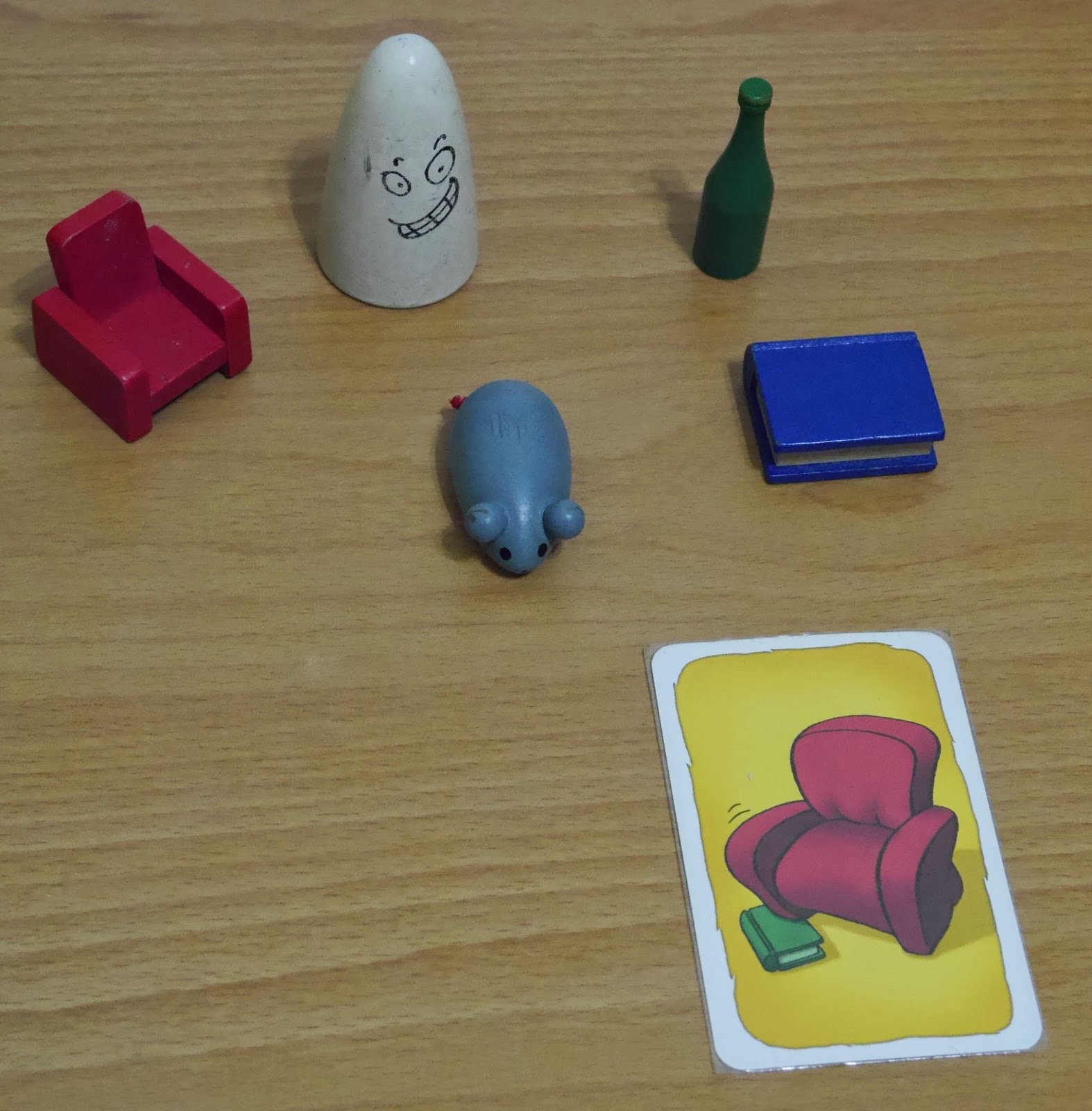 首先將2個遊戲的配件各自放在一起,代表2個房間:地窖與浴室。牌面上有圖案和顏色都相符的物品時,改找另一個房間(另1代)對應顏色的物品。 找時間挑戰一下吧!