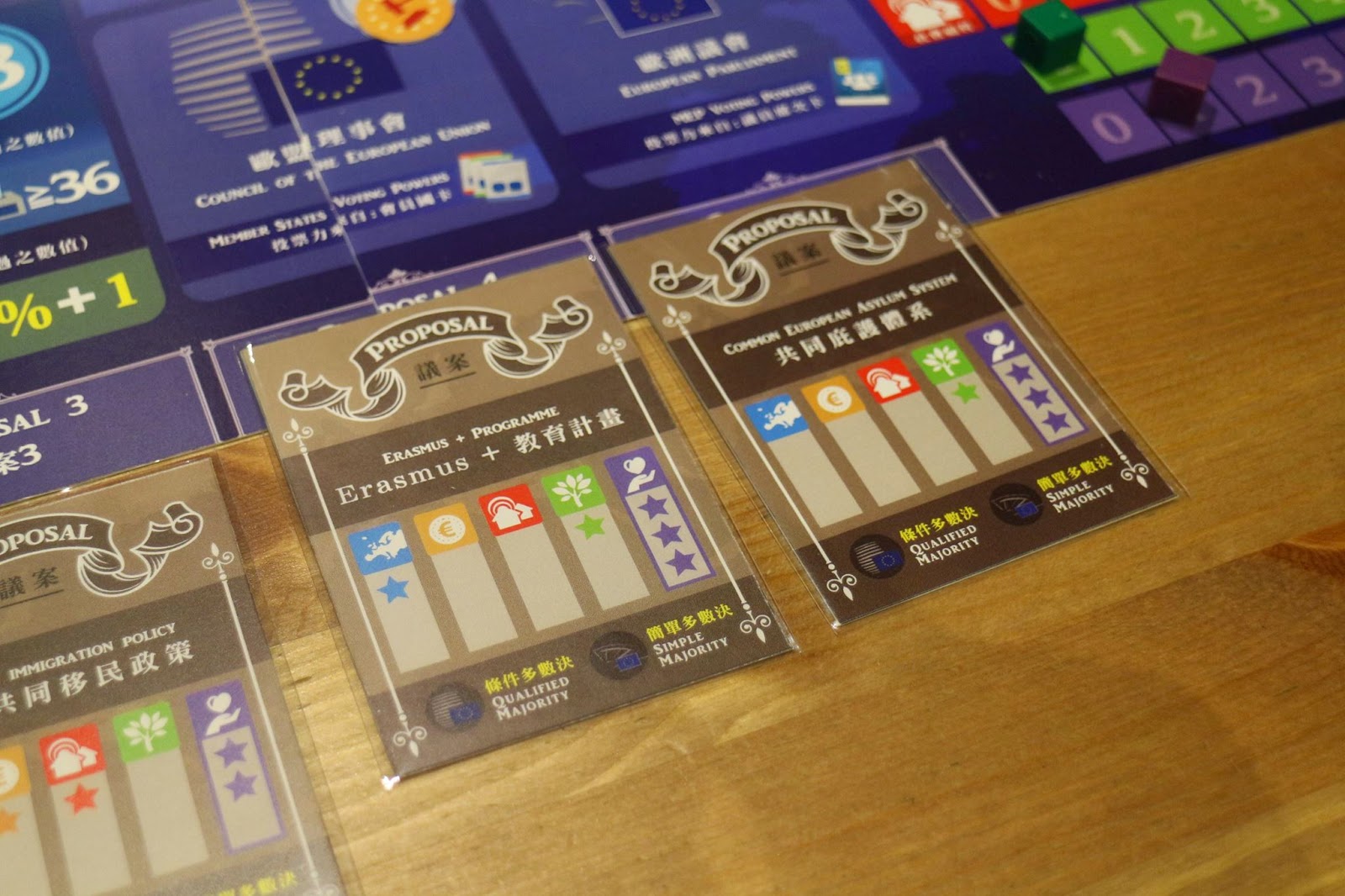 其實在歐盟的立法過程中,由執委會提出的法案必須同時在歐盟理事會跟歐洲議會中審理,2個機構都同意了才會執行,但是遊戲中沒辦法同時執行2個機構的事情,所以是先歐盟理事會,再進行歐洲議會的部分。如果想要嘗試入門版的朋友,也可以只進行歐盟理事會就好,就像我們今天的體驗一樣喔!