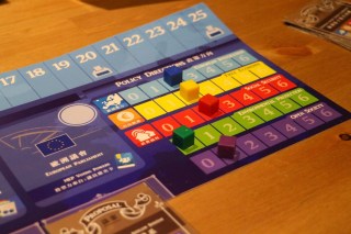 國家都拿完之後,請把手上會員國的投票力加總,就是回合中各位代表的票數。這時候請把自己的頭像標記物放在淺藍色的數字部分做標記,讓夥伴們都看得清清楚楚。準備好之後,就要進入審理法案的階段。