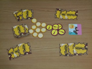 將餅乾跟驚嘆號的警告放在桌子中間,並且發給每個玩家3張手牌,輪到你的時候,請先抽1張卡片之後,再打出這次要走的步數
