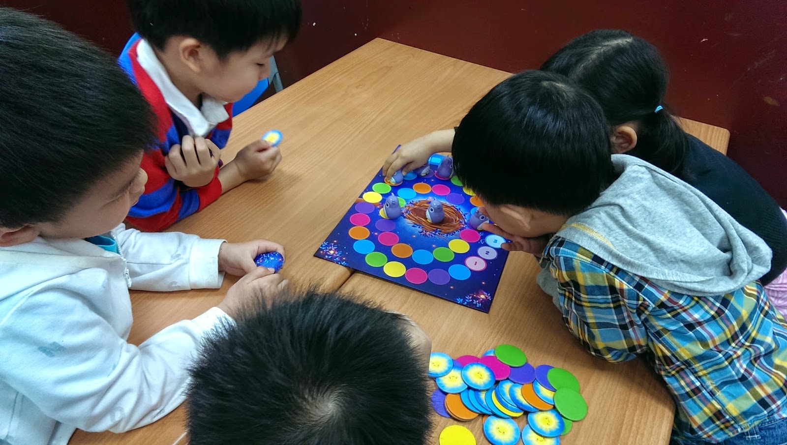 另外一種則是加入了一點策略的遊戲,這次嘗試重點解釋之後讓孩子直接進行操作,完全不介入,當然結果就是─團隊合作失敗。回合結束之後,再一次帶著孩子認識遊戲的配件,並且介紹用途,以及一一說明與提醒卡片的內容時,孩子們的臉上就會出現恍然大悟的表情,並且對他們來說印象更加深刻,而且也會彼此提醒跟激盪出不錯的想法喔!