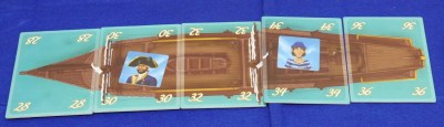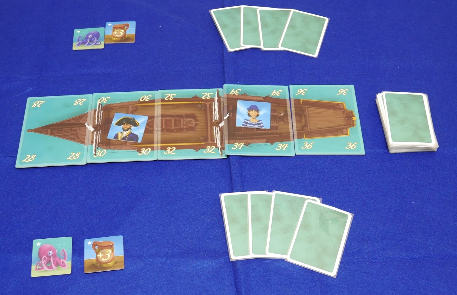 首先將船卡拼成一艘船,並且放上船長與水手。