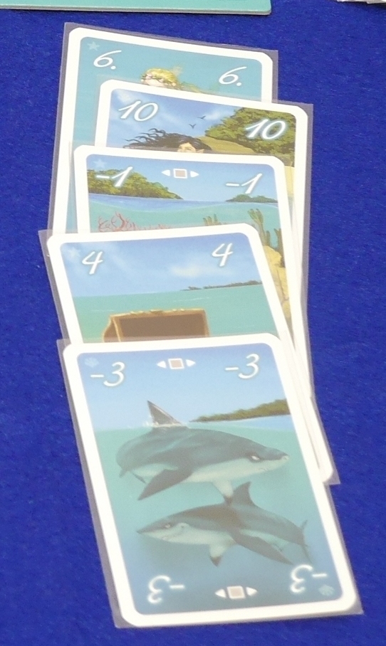 玩家們要想辦法讓自己這一邊的卡片加起來的數字總和越靠近船卡上的數字,就有機會贏得該船卡。