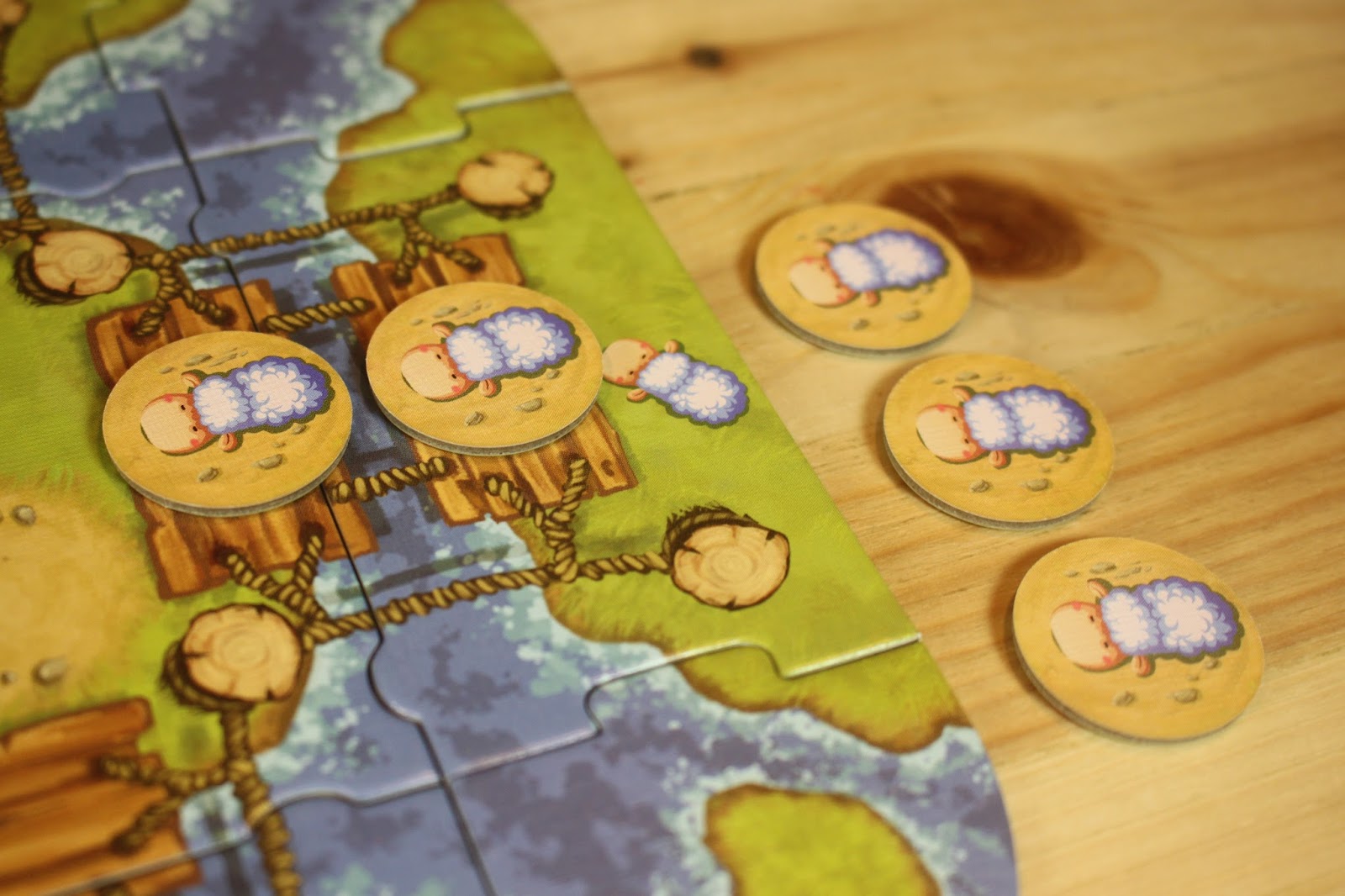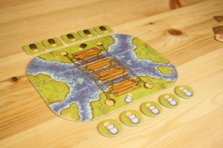 每位玩家會拿到2個斷橋,請所有玩家們在擲小羊時,也將斷橋放在手裡,往桌面輕輕一擲,就決定了這次遊戲要使用哪些斷橋。但還有一個機會:由起始玩家決定要使用幾個,各玩家再決定要使用哪些。所以還是有一點點的機會的!起始玩家決定好要使用的斷橋數量後,再請各玩家自行決定要將斷橋擺放在自己面前的哪些橋上。