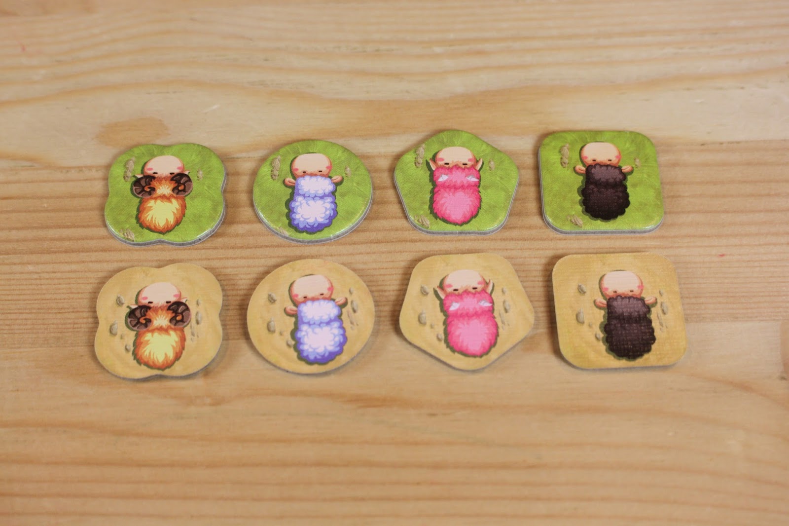 首先請玩家們仔細觀察自己的小羊棋(之後簡稱小羊),每一個顏色的小羊形狀皆不相同,並且有2面不同的顏色:一面是草地、一面是泥土。
