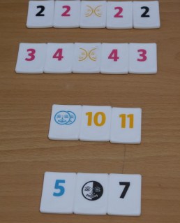 2. 雙人百搭:一張牌上面有2個臉,代表2個數字,但至少還是要3張牌一組喔!