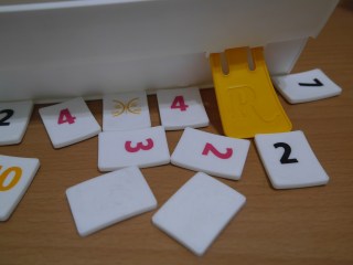 除了新的百搭牌之外,連整套拉密的顏色都跟舊版不一樣!!!是素雅的白,牌架增加了彎曲設計,解決了玩遊戲牌架容易倒的問題!!