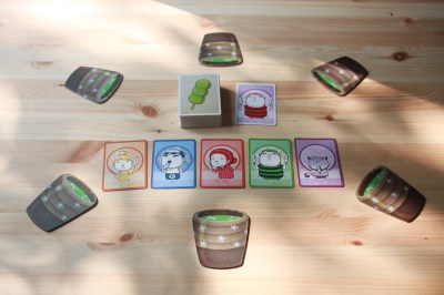 首先可以從簡單的入門版開始挑戰!請將所有的角色卡片( 雙面都一樣的卡片 )放到桌子中間,並且每位玩家拿著一個杯子,沒錯!你也可以拿真正的杯子!