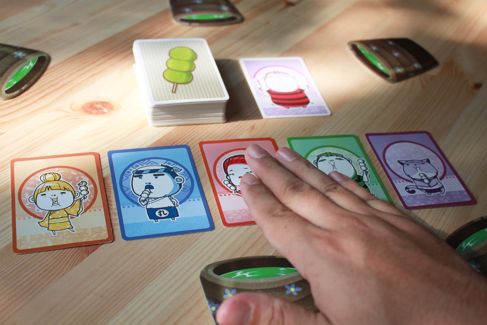 當白色丸子出現的時候,請依照翻開卡片的「人物」找找是誰點餐,如果是胖哥哥,這時候趕快伸出手去拍「胖哥哥」卡片,第一位拍對的人就可以把翻開的卡片拿走,即獲得一分!