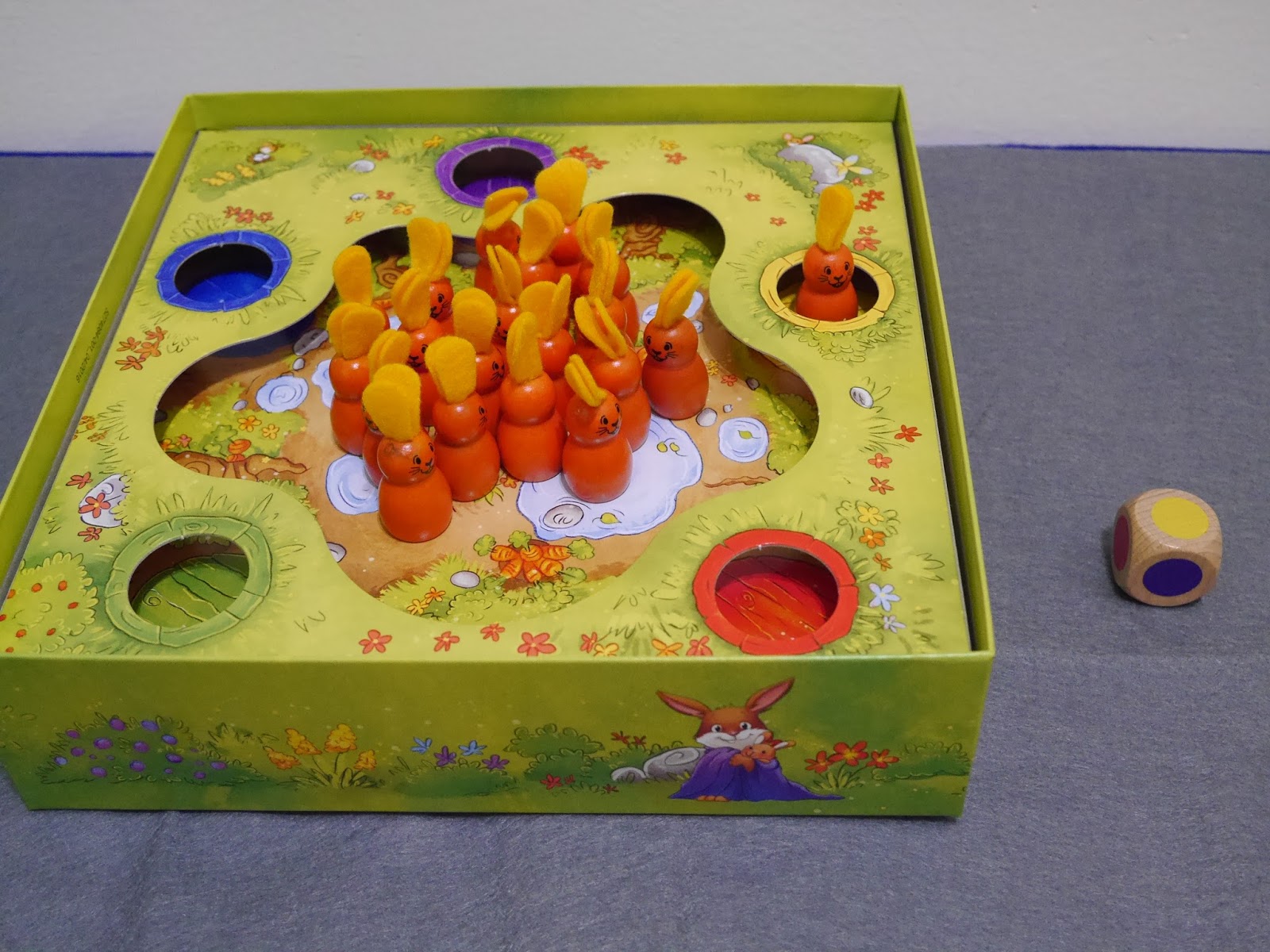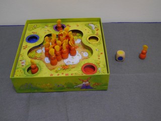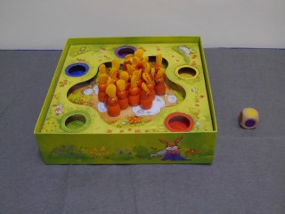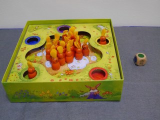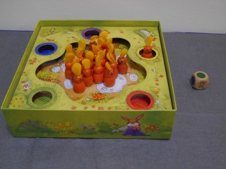 現在丟出的是黃色,所以請將一隻兔子放到黃色的洞裡面