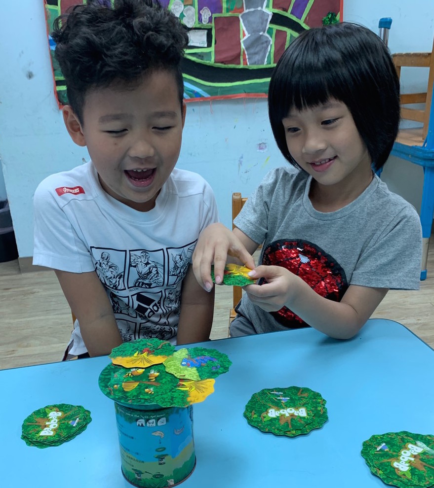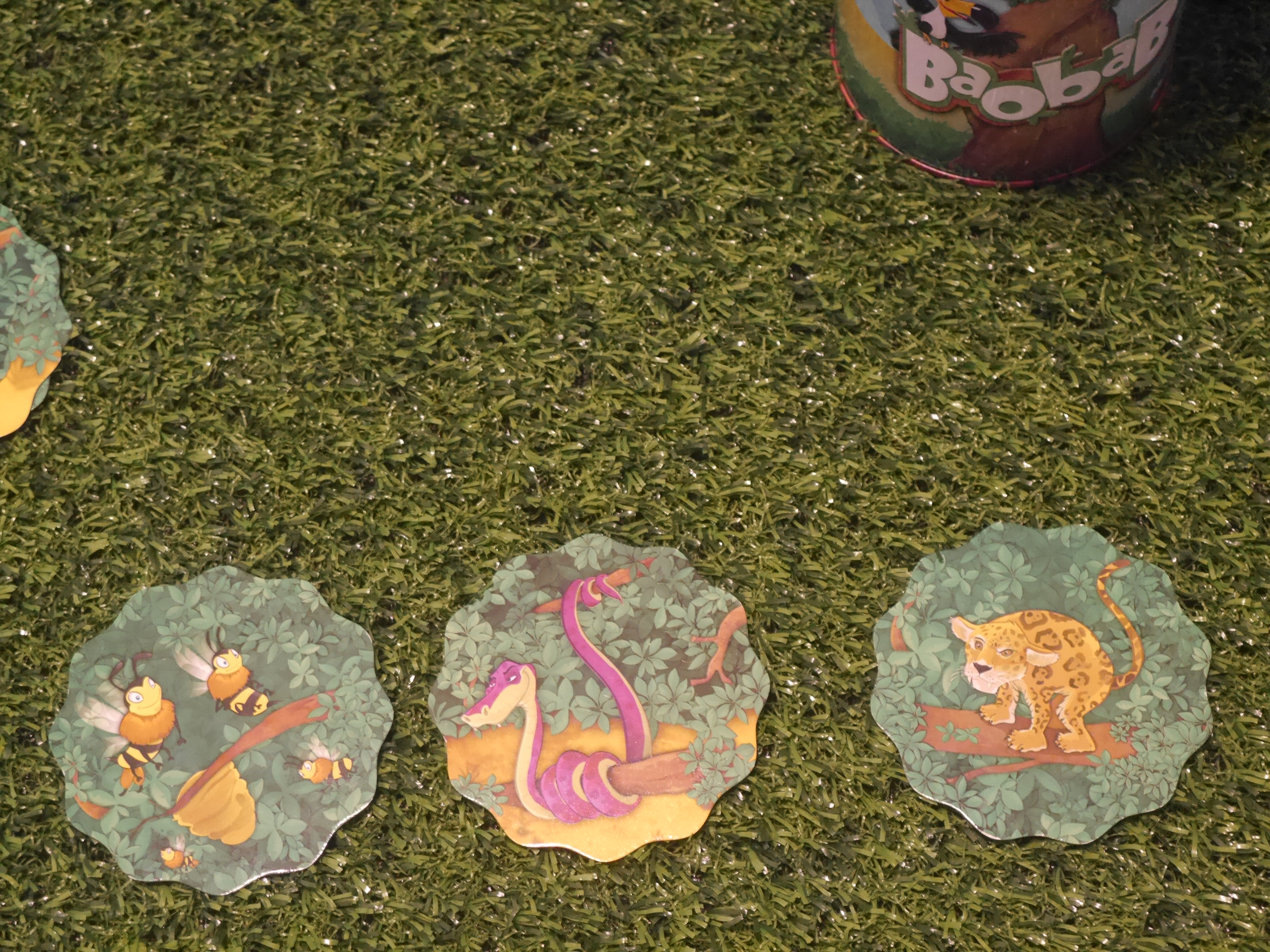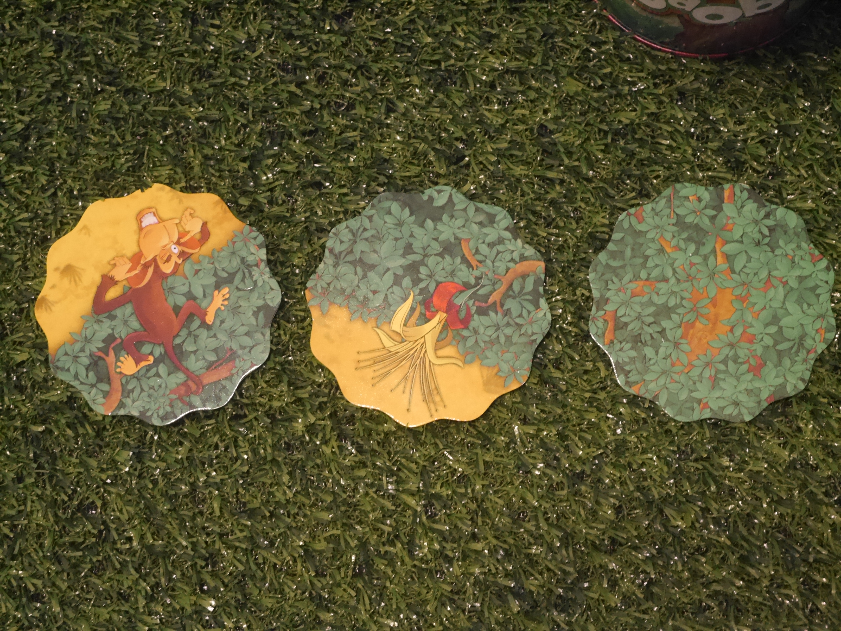 玩家可以想像,其實樹上最常見的就是這些,所以只要把這些卡片放到樹上就對了!其中只有猴子有一項特殊規定:猴子最喜歡在樹枝間盪來盪去~所以把猴子放上去的時候,需要放在卡片的最外圍。