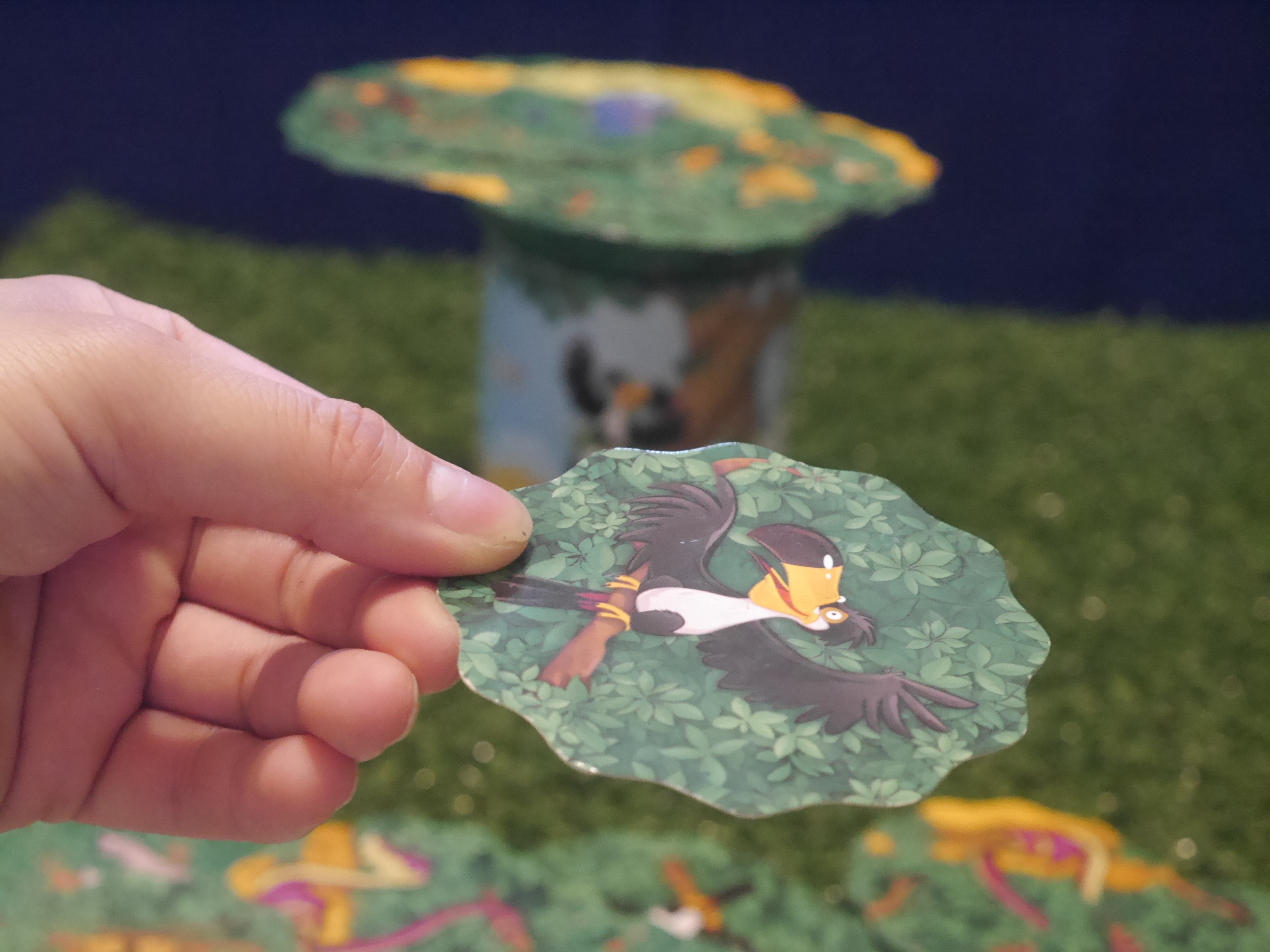 鳥兒當然是飛上樹的!所以翻開大嘴鳥卡片的時候,請用丟飛盤的方式,將大嘴鳥送到樹上去吧!