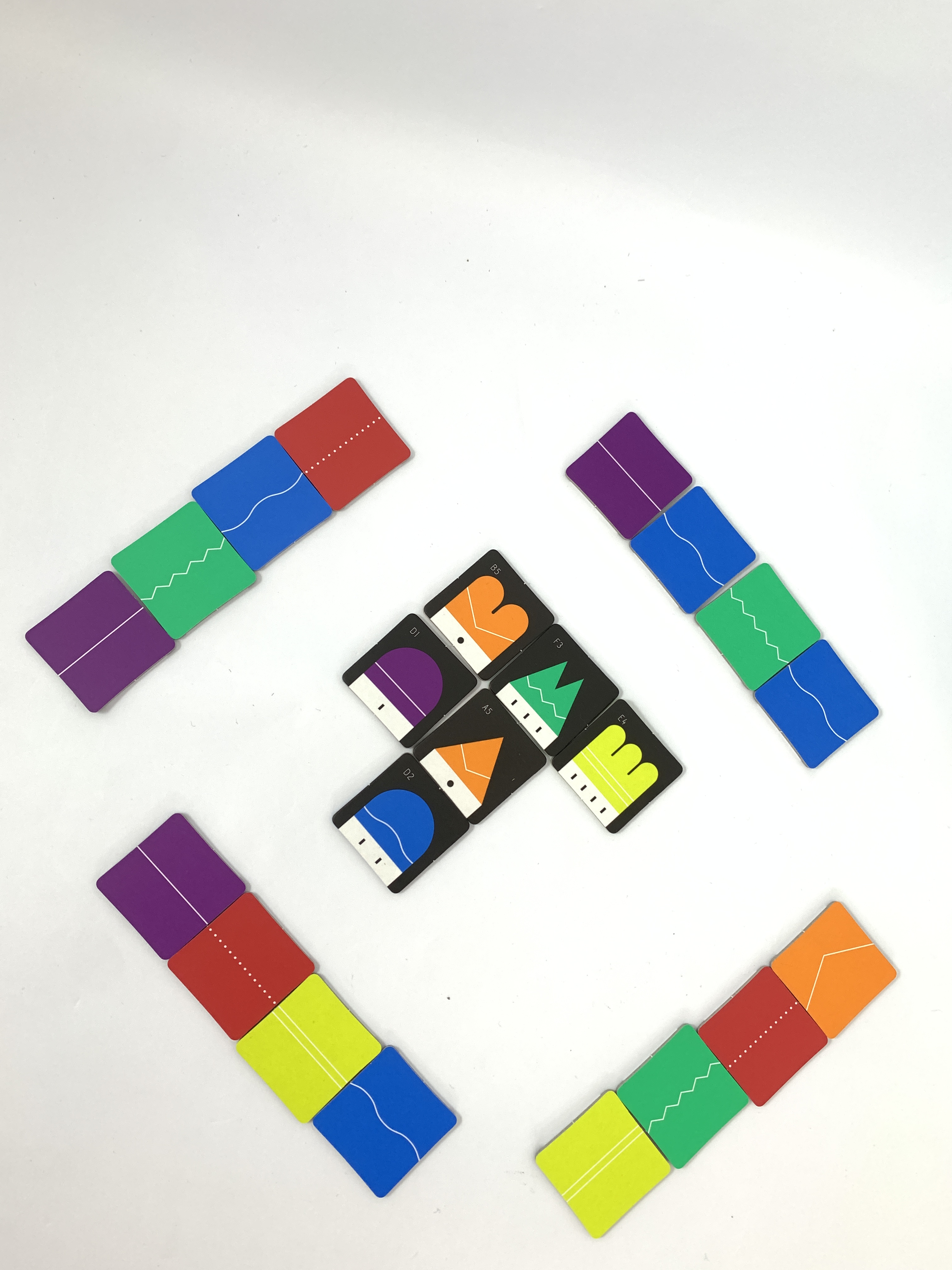 運用顏色、形狀作為遊戲中的主軸類型,其實不少,但迷你可愛的3cm卡牌又更少囉!在Town 77七七城(Town66 六六城)當中,參與者必須在遊戲過程中,盡可能地在範圍中出牌。出牌時必須觀察範圍中的顏色、形狀,但是也可以從其他參與者的牌架上,推理到手上可能的牌是哪些,遊戲過程中隱藏了相當多的精打細算、邏輯思考在其中。而且又只有顏色跟形狀,對於中、大班的幼兒來說,也是可以慢慢嘗試挑戰1人規則喔。