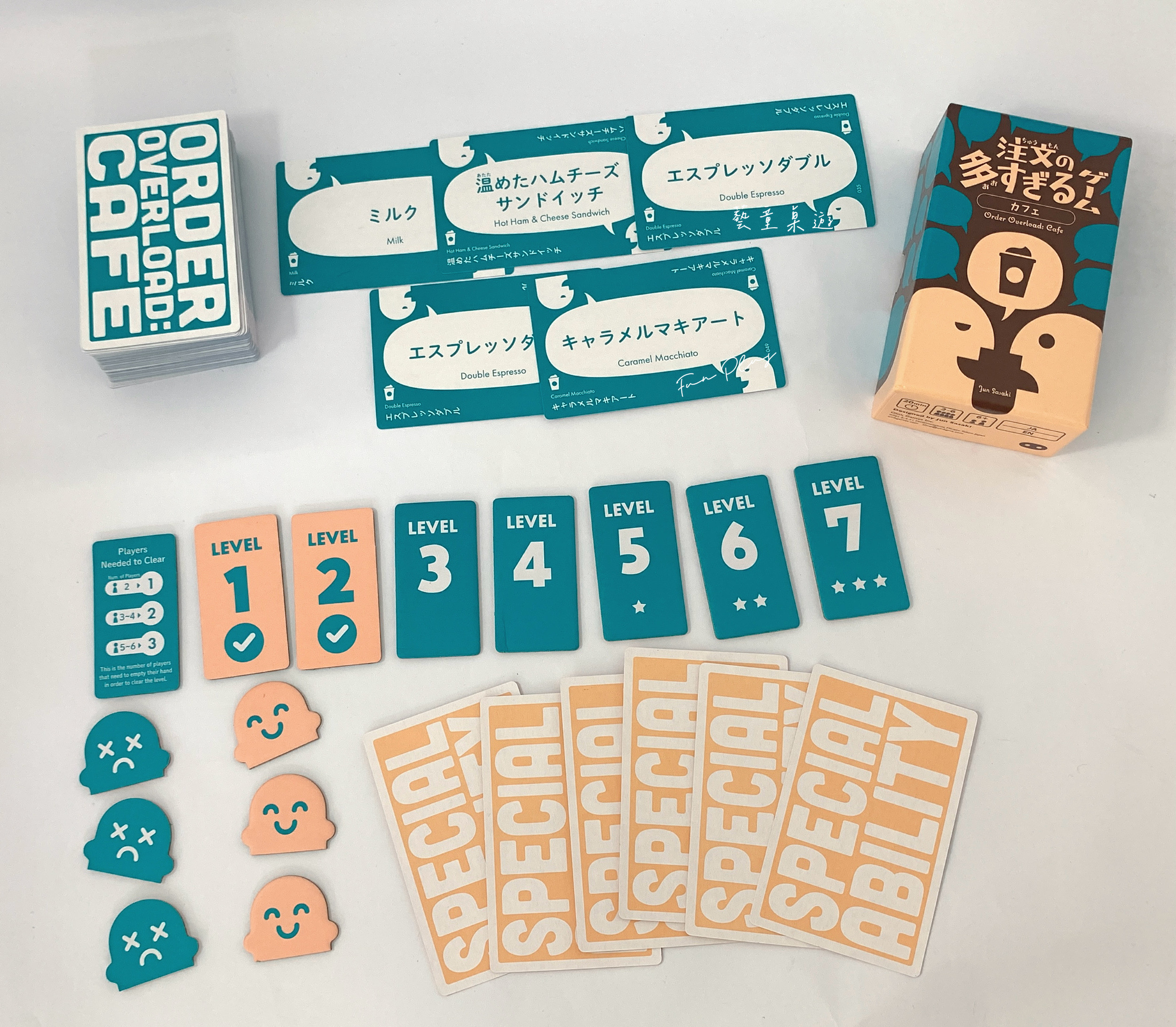 食衣住行育樂中,既然「食」是第一個字,代表就是真的很重要!可見會閱讀外文菜單、點菜是很重要的基本能力。Order Overload Café超載咖啡館是一款合作遊戲,參與者要一起記得客人點的飲料之後,遊戲過程中要說出其他玩家手上的飲料。看似簡單,但是玩起來卻是挑戰滿滿啊!看看你們這一群夥伴能夠記得多少杯飲料!這樣以後出國就不用擔心沒東西喝囉!