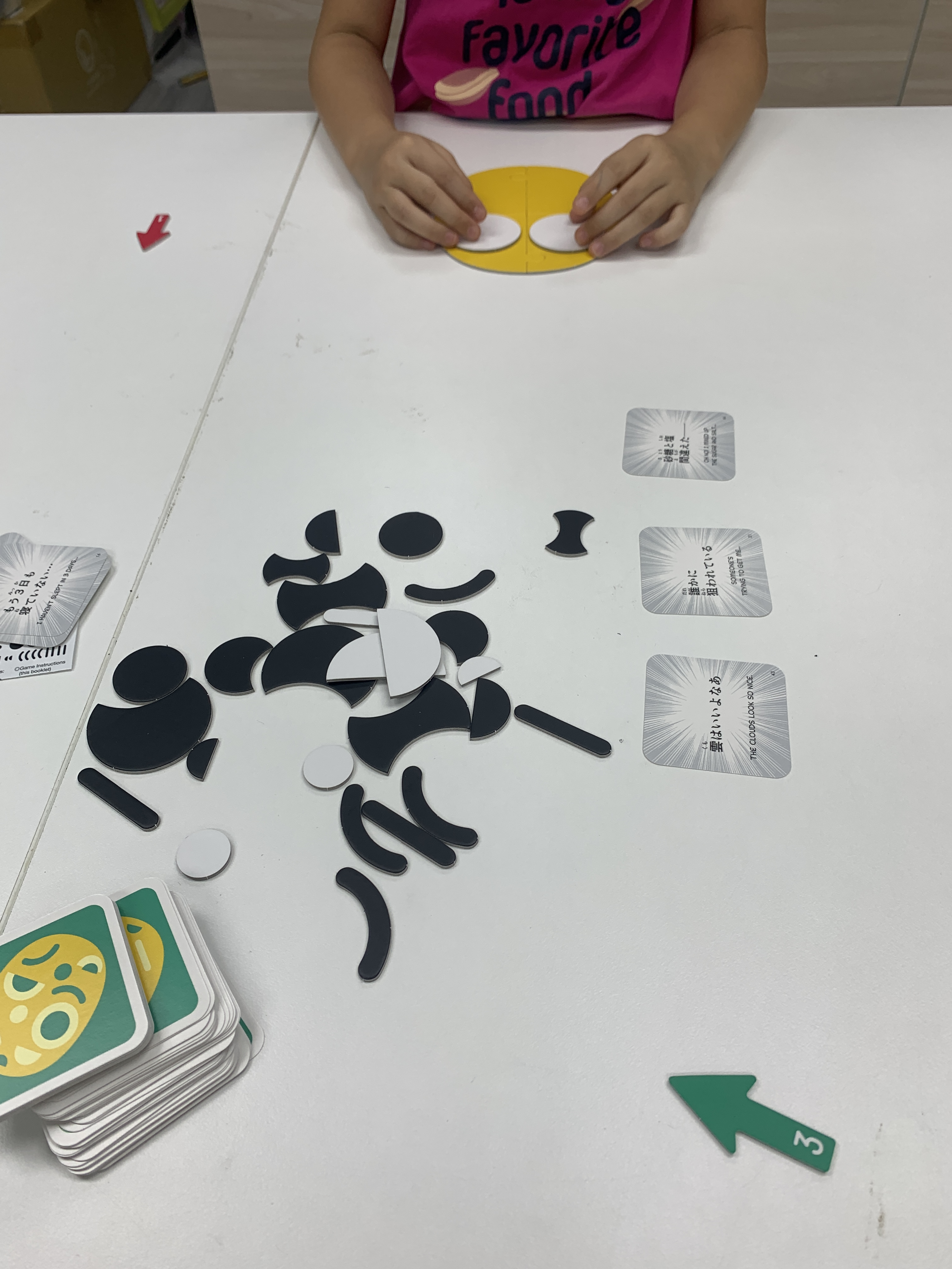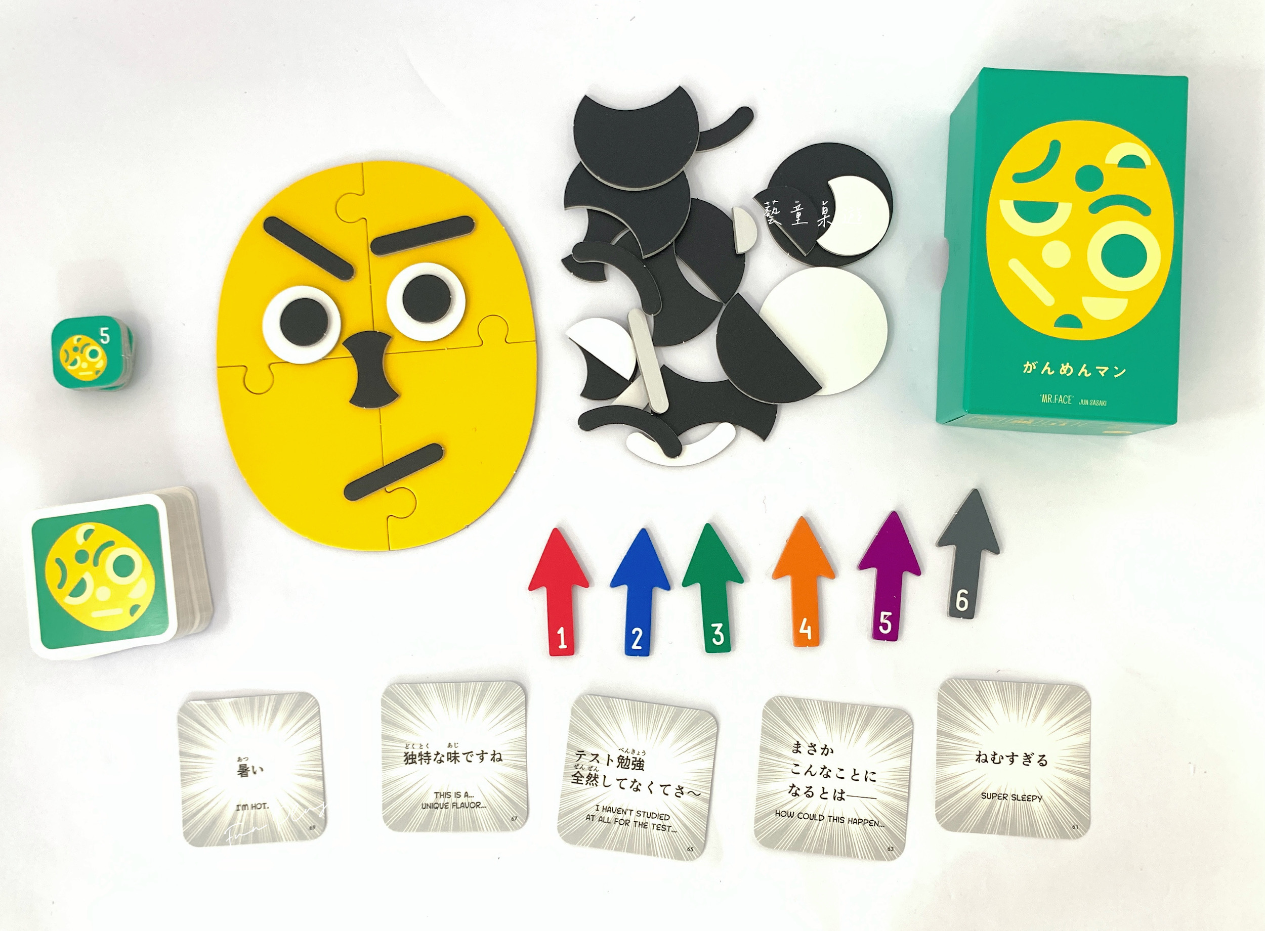 Mr. Face臉先生這款遊戲中,參與者必須要試著用遊戲中的各種配件擺放出一個表情,接著各出1張卡片,大家再猜猜看答案是哪一張。擺放配件的方式五花八門、天馬行空,有時候真的是讓人出乎意料。所以其實很適合使用在需要傳遞、表達訊息的活動當中。並且卡片上的英文句子也是相當生活化的用語,可以和課堂用語、日常用語相互結合,也是很棒的英文小幫手喔!