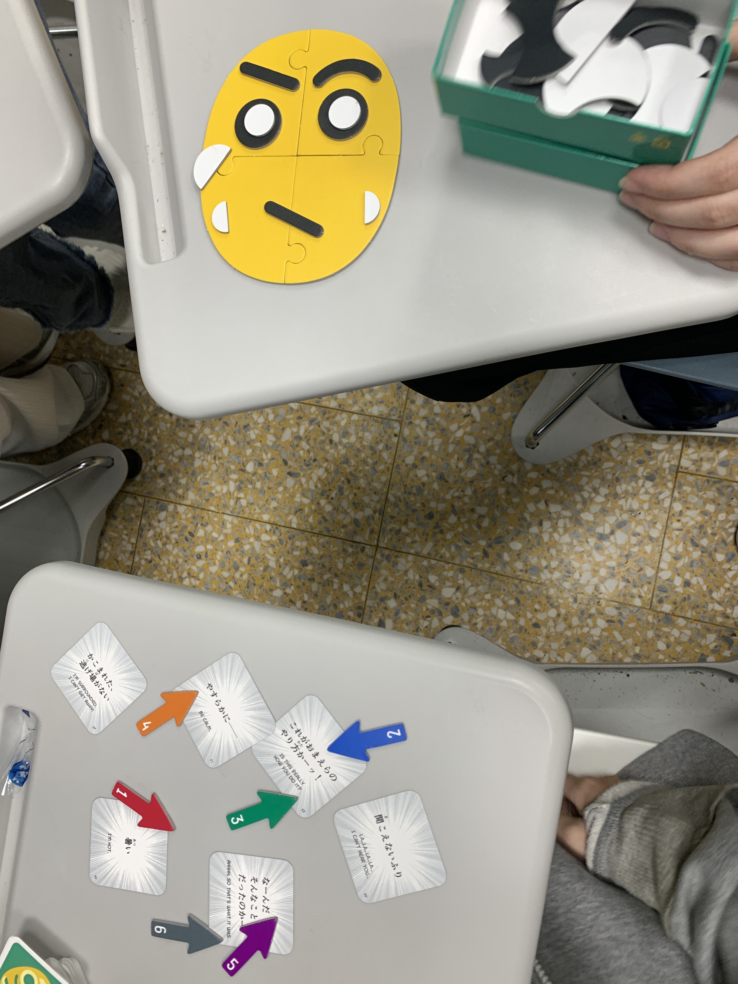 玩桌上遊戲的輕鬆感,對於學習外語有相當的幫助。而桌上遊戲營造的主題氛圍,讓參與者總是能專心在情境中放心體驗,在各種試錯的狀況當中,找到正確的、適合的,就是對參與者很大的助益。而在遊戲中聽到其他人為自己的成功而發出讚嘆或歡呼時,就是一種受到肯定的成就感,對於學習外語的動機也有相當的幫助喔!