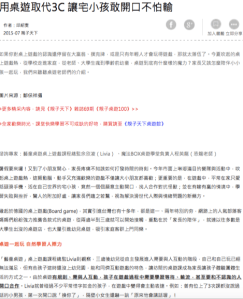 【2015/07 親子天下 Baby專訪:用桌遊取代3C 讓宅小孩敢開口不怕輸】